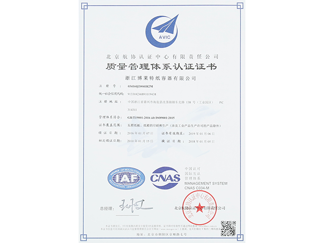 In order to extend the industrial chain, in April 2009, we invested in the construction of a corrugated board project with an annual output of 100 million square meters, becoming a manufacturing and processing enterprise for paper containers, introducing a world-class, advanced technology and advanced Taiwan Xiangyi 2.5 m wide door width and high speed. A five-layer corrugated board production line; two automatic printing machines with high-speed four-color printing, slotting and die-cutting vacuum adsorption; one automatic flat-die die-cutting and creasing machine, fully automatic nail-bonding integrated linkage line One. The company has passed ISO9001 quality management system certification and Wal-Mart certification. In 2017, it was rated as a national high-tech enterprise, achieving an industrial output value of 270 million yuan, and is expected to become a paper product manufacturing enterprise with an output value of 500 million.